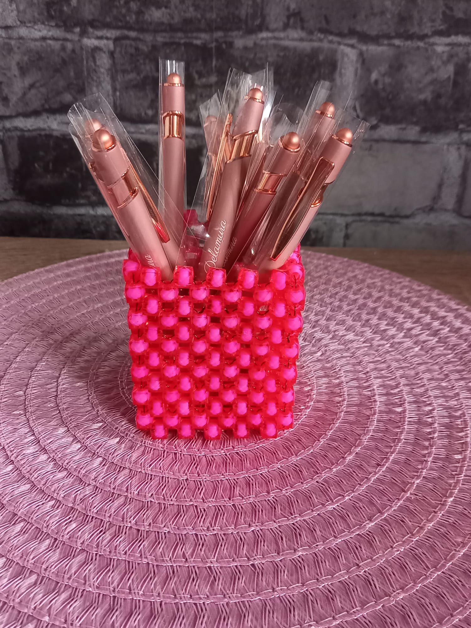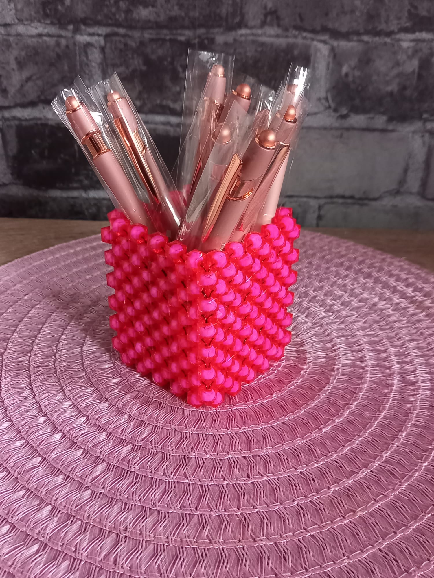Handgefertigter Organizer aus hochwertigen, glänzenden Perlen – ideal für Pinsel, Stifte, Make-up-Tools, Bürobedarf oder kleine Alltagsgegenstände.